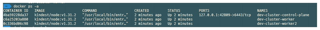 dev-cluster-control-plane Ready control-plane 118m v1.31.2