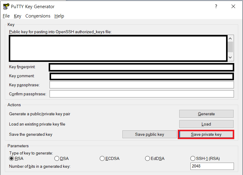 4. 키를 성공적으로 불러왔다면 Save private key 클릭